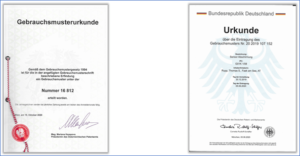 Die Idee wurde durch mehrere Gebrauchsmuster geschützt (siehe Abbildung 7) und in verschiedenen Versionen von Prototypen umgesetzt und erprobt.